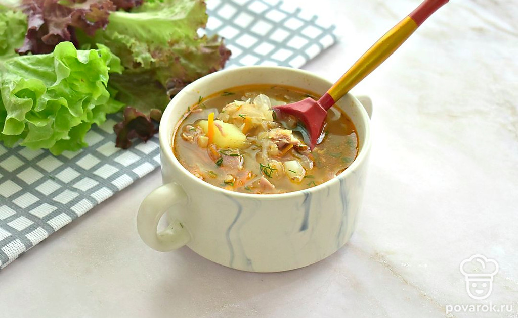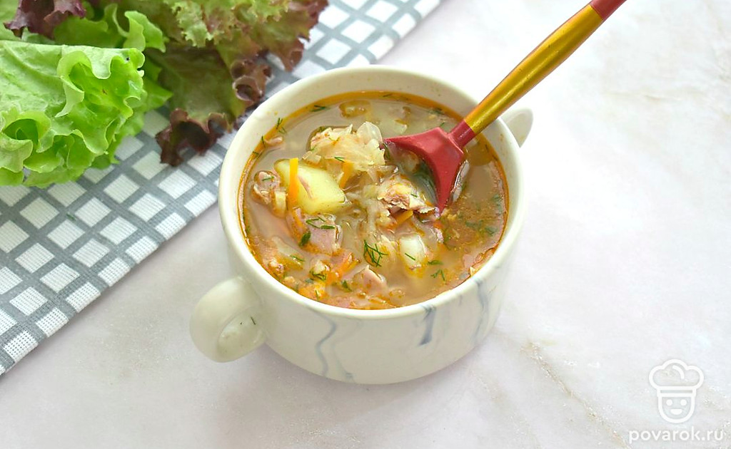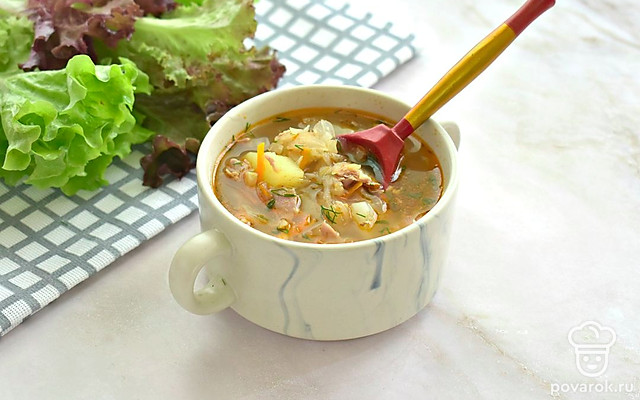 Щи со свининой и томатной пастой