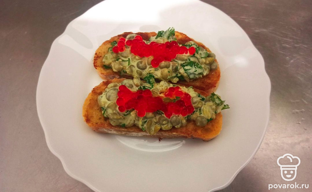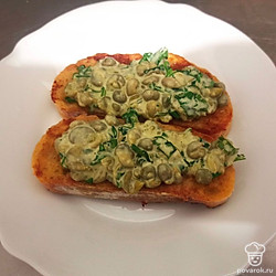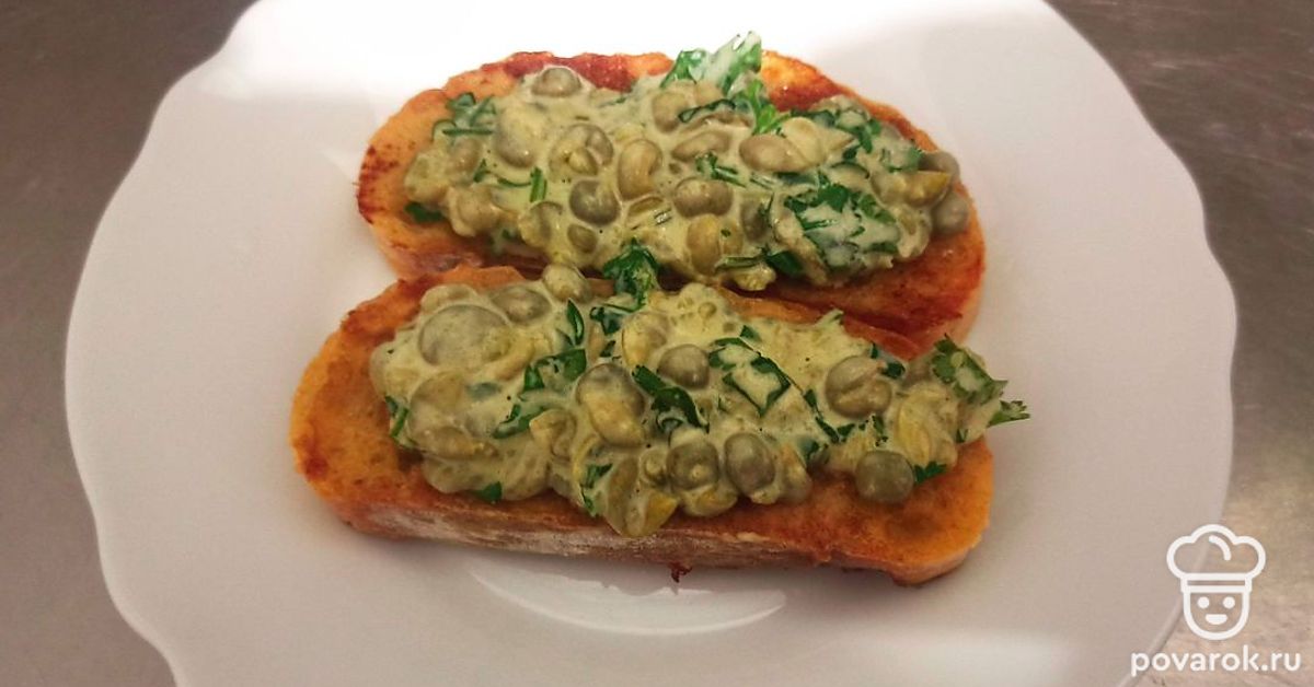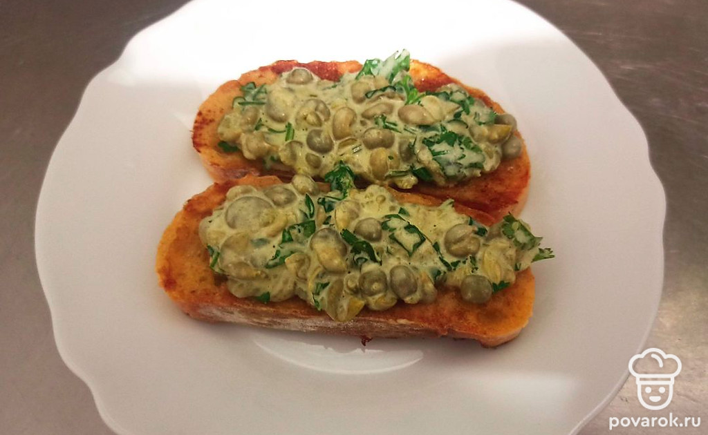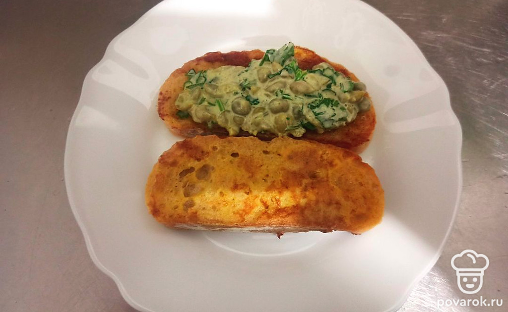 Нанесите получившийся соус на ломтики чиабатты. Подавайте к столу.