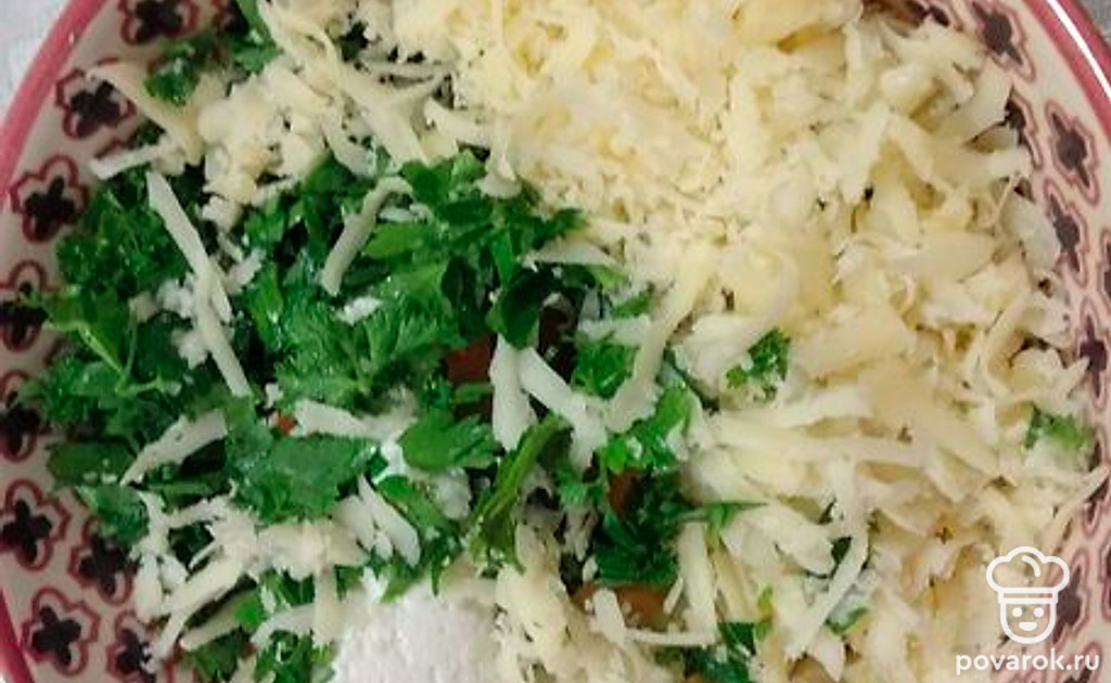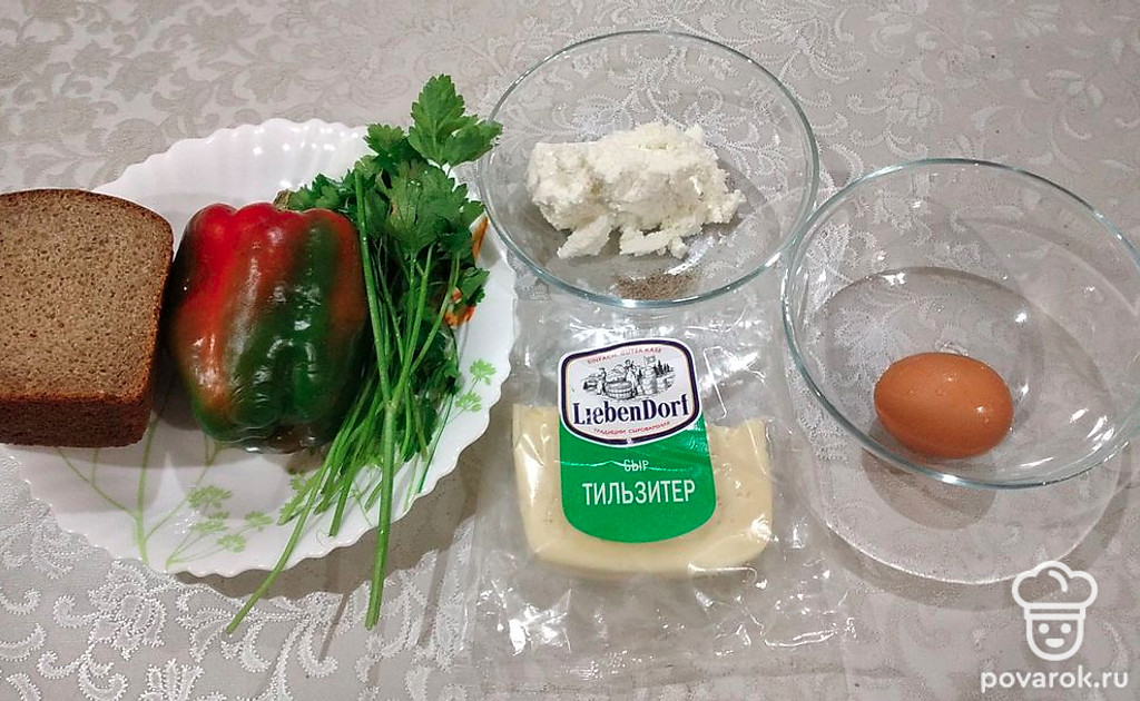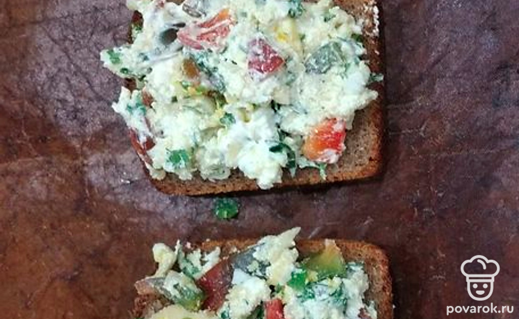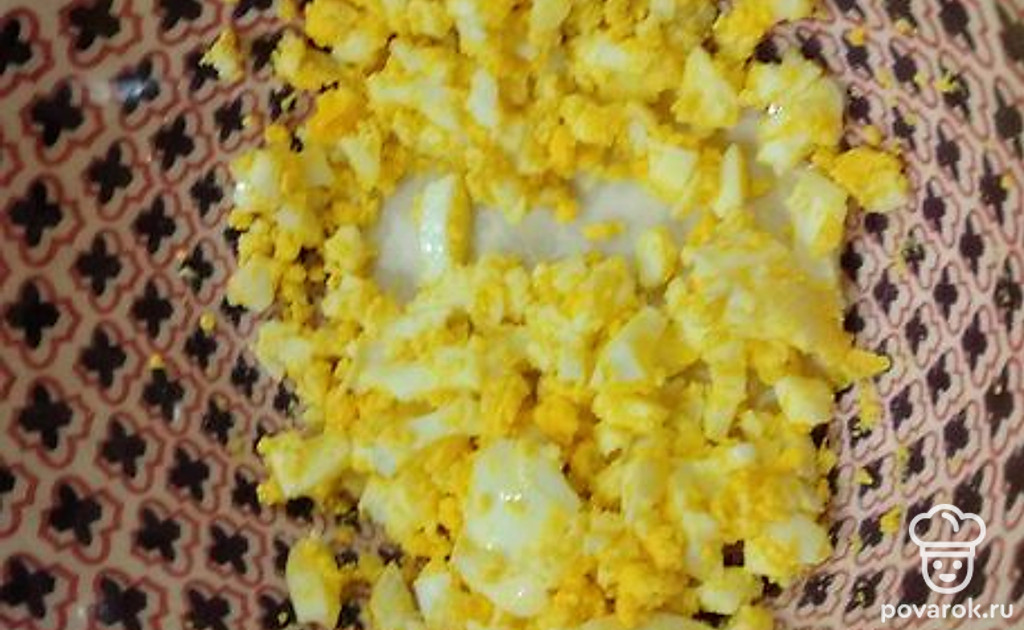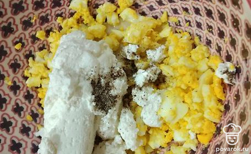 Смешайте нарезанное яйцо, творог, черный перец, соль.