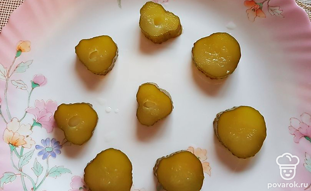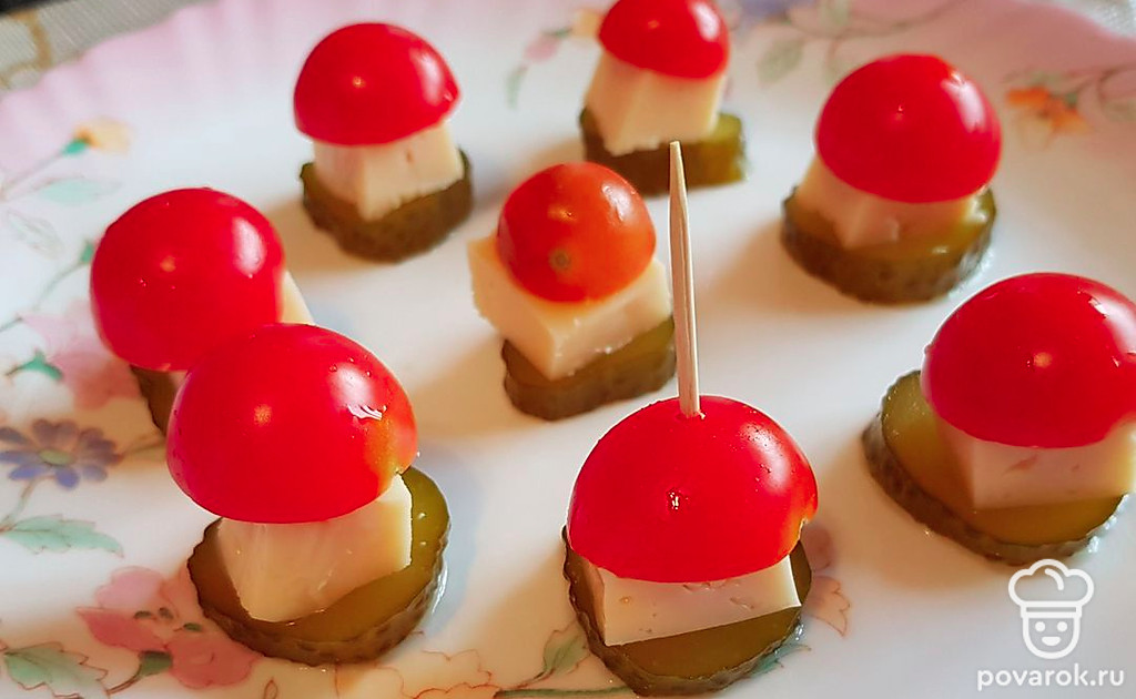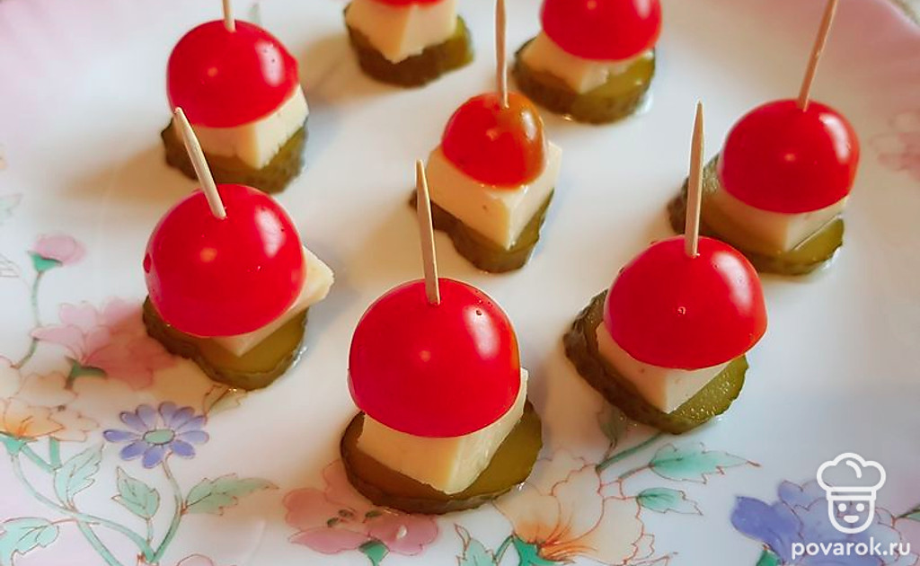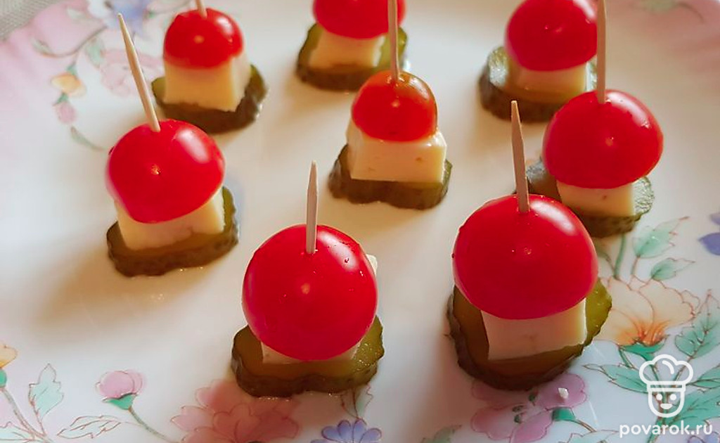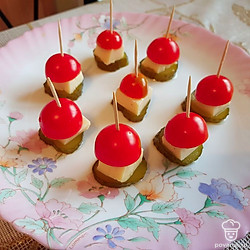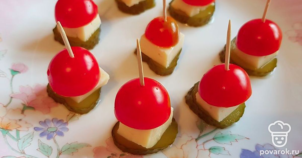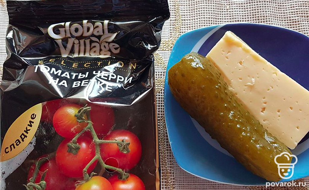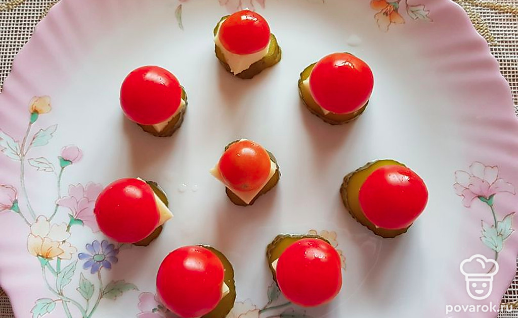 Это блюдо отлично подойдет для праздничного стола. Делается очень просто. Сочетание свежего помидора с маринованным огурцом получается очень вкусным и изысканным.