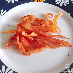 Выложите кальмаров на противень. Готовьте в духовке с открытой дверью 1,5 часа (при 60-70 градусах).