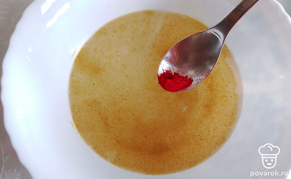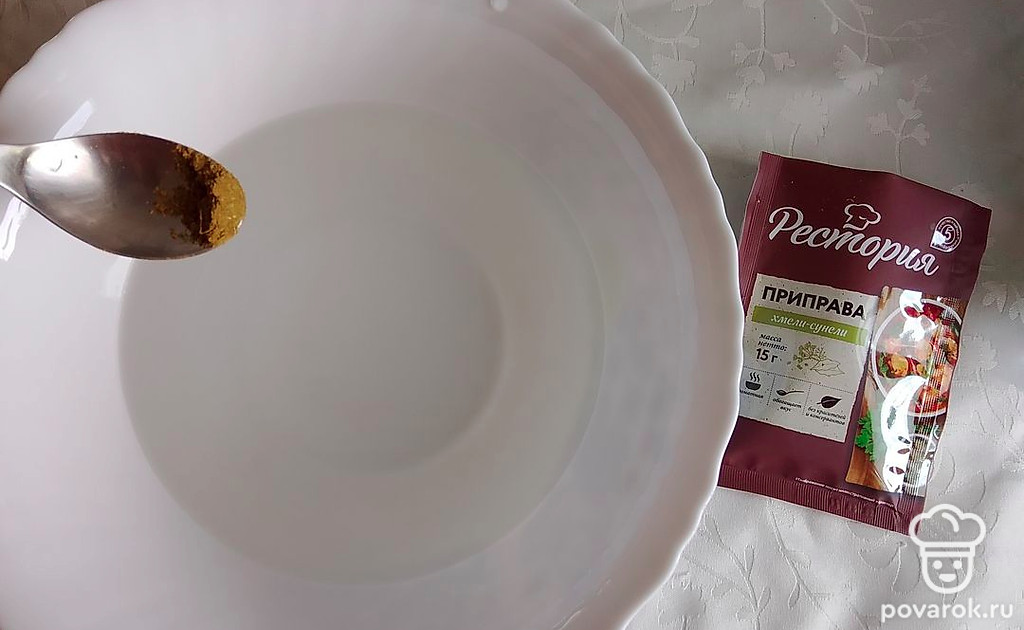 Добавьте в воду столовую ложку соли и половину чайной ложки хмели-сунели.