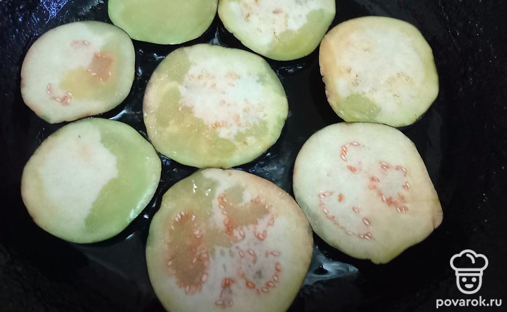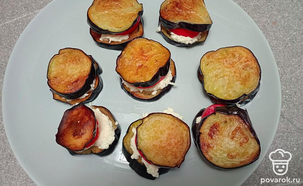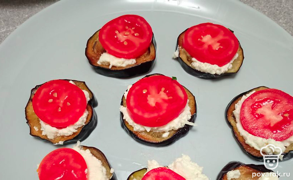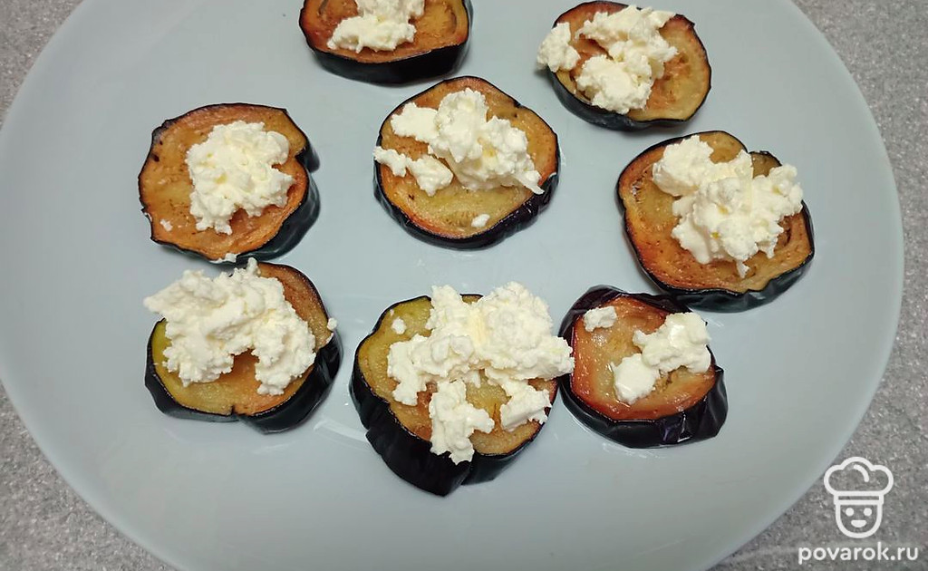 На половину обжаренных баклажанов выложите получившуюся смесь.