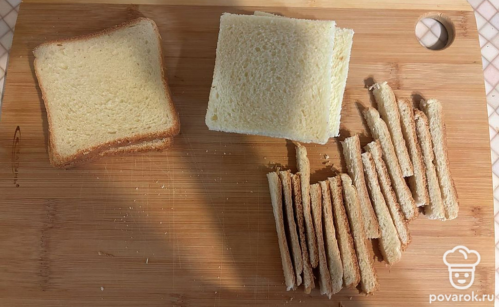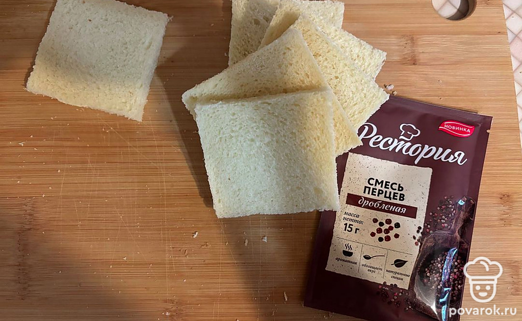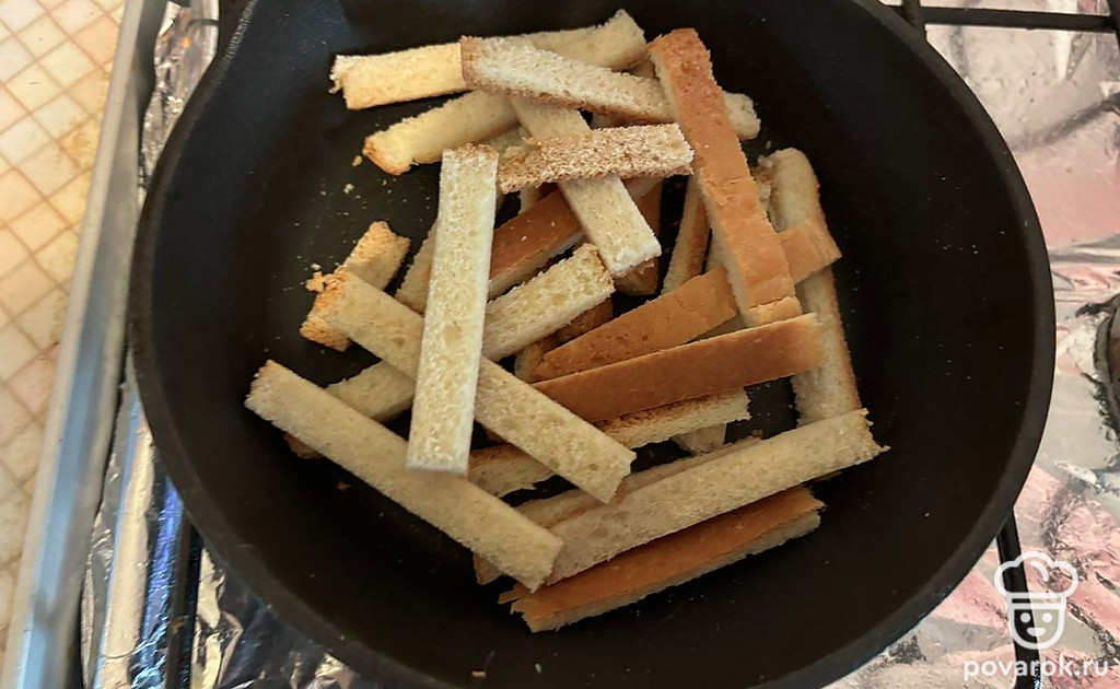 Обрезки хлеба обжарьте на сухой скороде до хрустящего состояния.