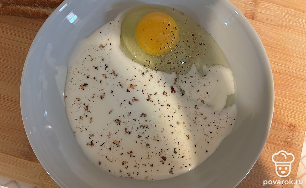 В миске соедините перец, яйцо и молоко. Перемешайте.