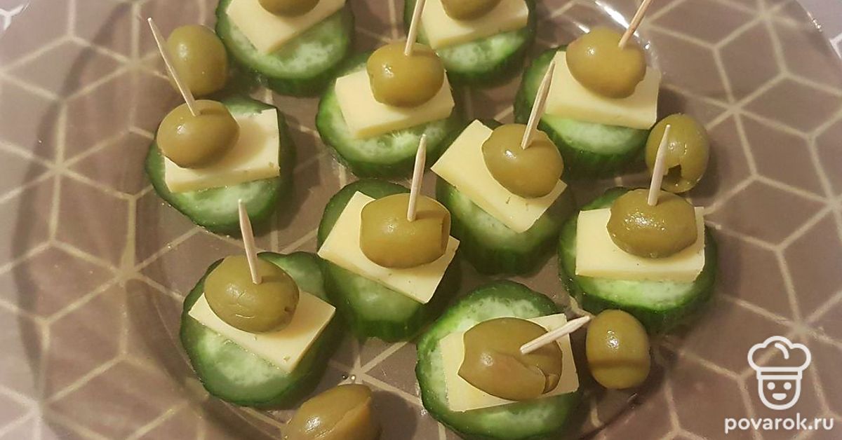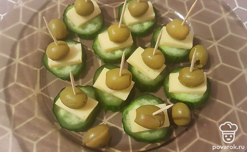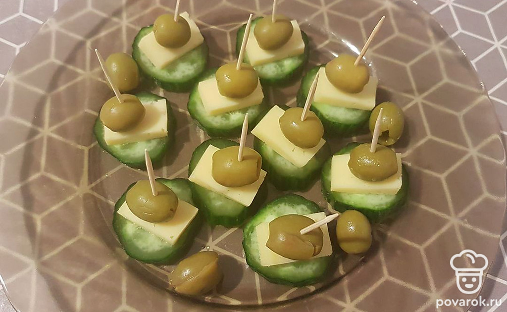 Канапе из огурца, сыра и оливок