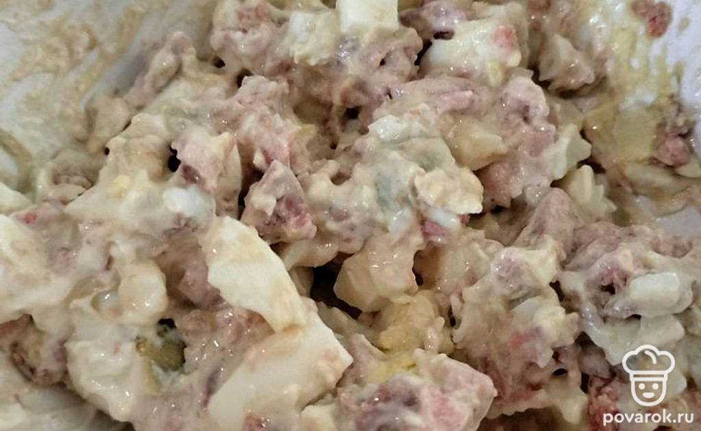 Смешиваем все ингредиенты, добавляем сметану и соль по вкусу.