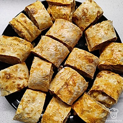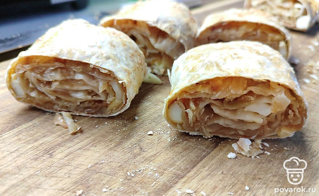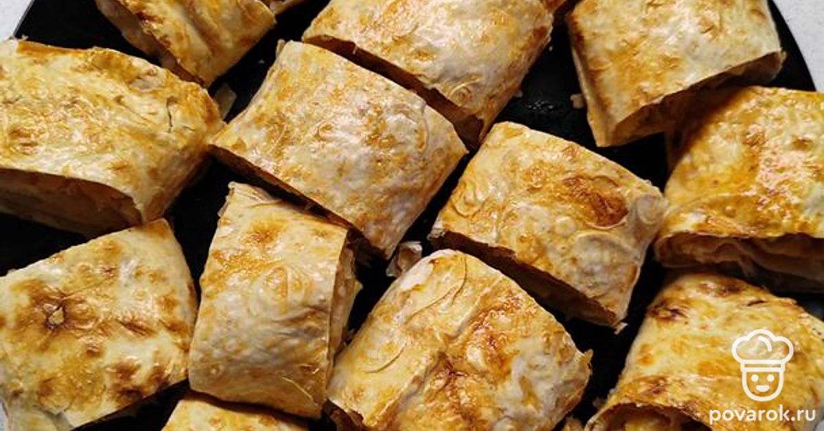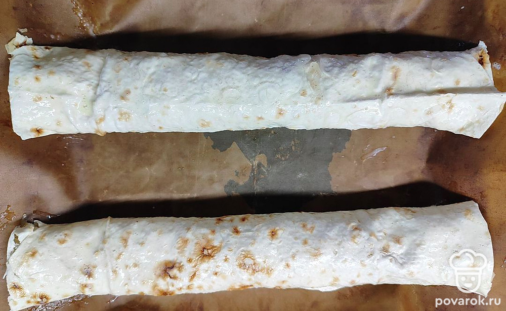 Выложите рулетики на противень и смажьте яйцом. Выпекайте в разогретой до 180 градусов духовке 10 минут.