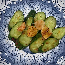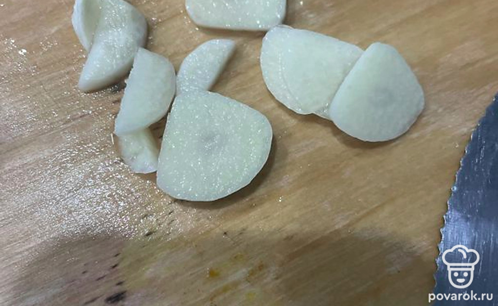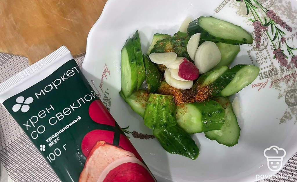 Эта закуска получается очень острой благодаря чесноку и хрену. Подходит к стейкам.