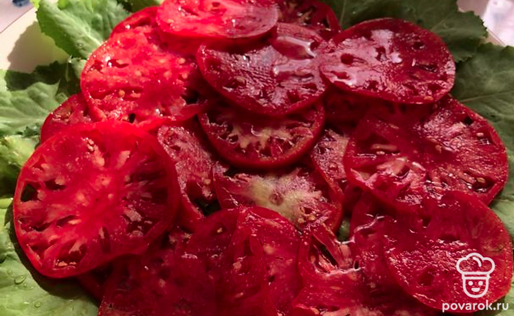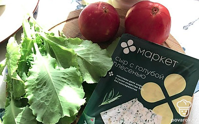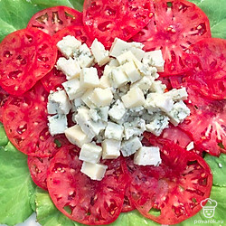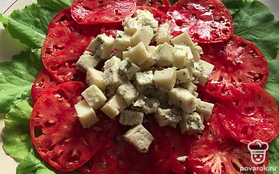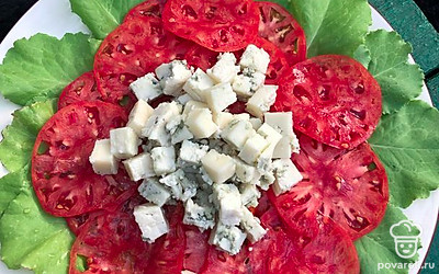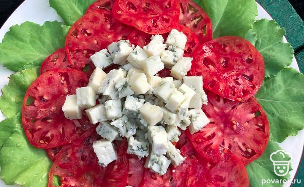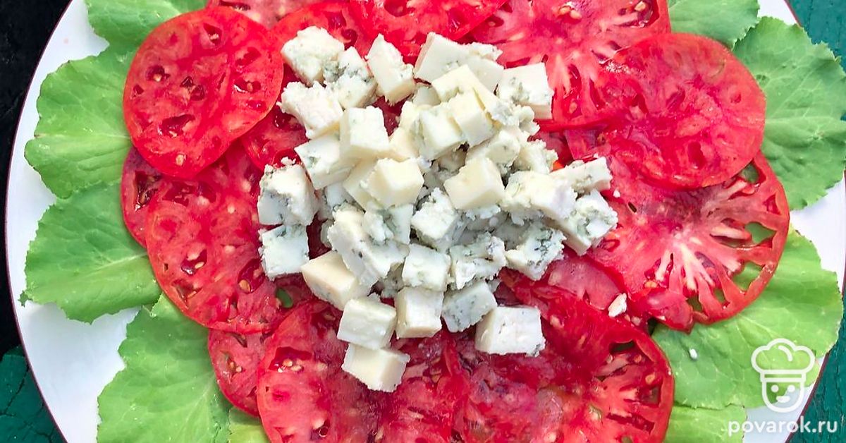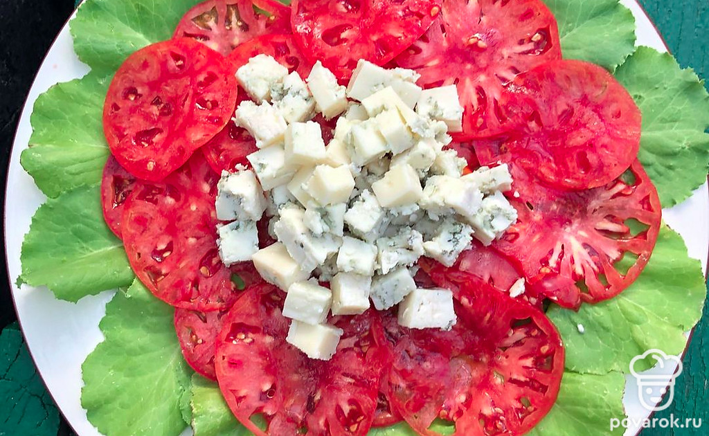 Карпаччо из свежих томатов с сыром с голубой плесенью