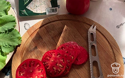 Помидоры нарезать тонкими слайсами.