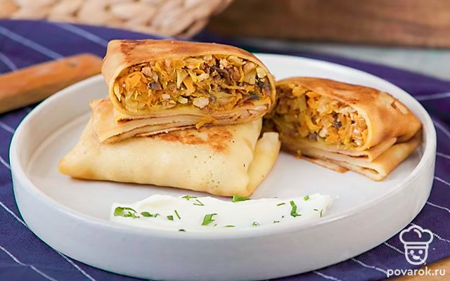 Блины — это визитная карточка русской кухни. Есть множество рецептов их приготовления и подачи: сладкие, с припеком, фаршированные. Прежде чем готовить такое блюдо, необходимо сначала испечь тонкие блинчики. Блинчики с овощами, грибами и мясом – прекрасный вариант для сытного завтрака. Вкусные, аппетитные, они насыщают даже любителей хорошенько поесть.