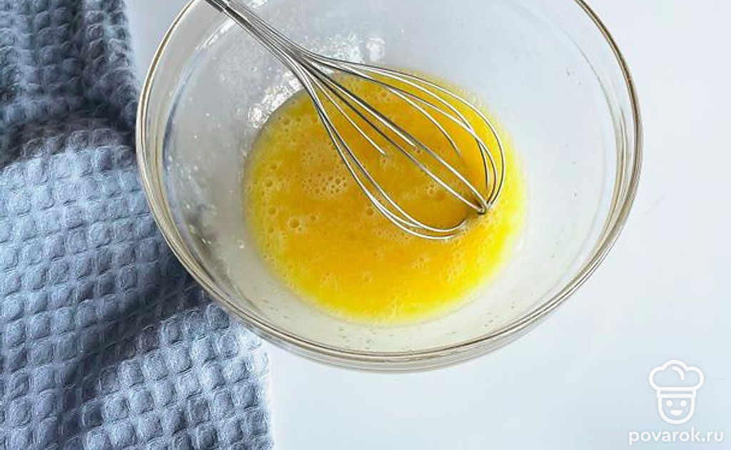 Яйца смешайте с сахаром и солью, взбейте миксером или венчиком до однородности.