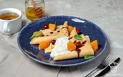 Кукурузные блины — аппетитное и полезное блюдо, которое можно приготовить как десерт к чаю. Блинчики обычно поливают вареньем, сгущенным молоком или медом. В кукурузной муке нет глютена, но много витаминов и микроэлементов, которые помогают укрепить кости и сосуды и нормализовать работу кровообращения.