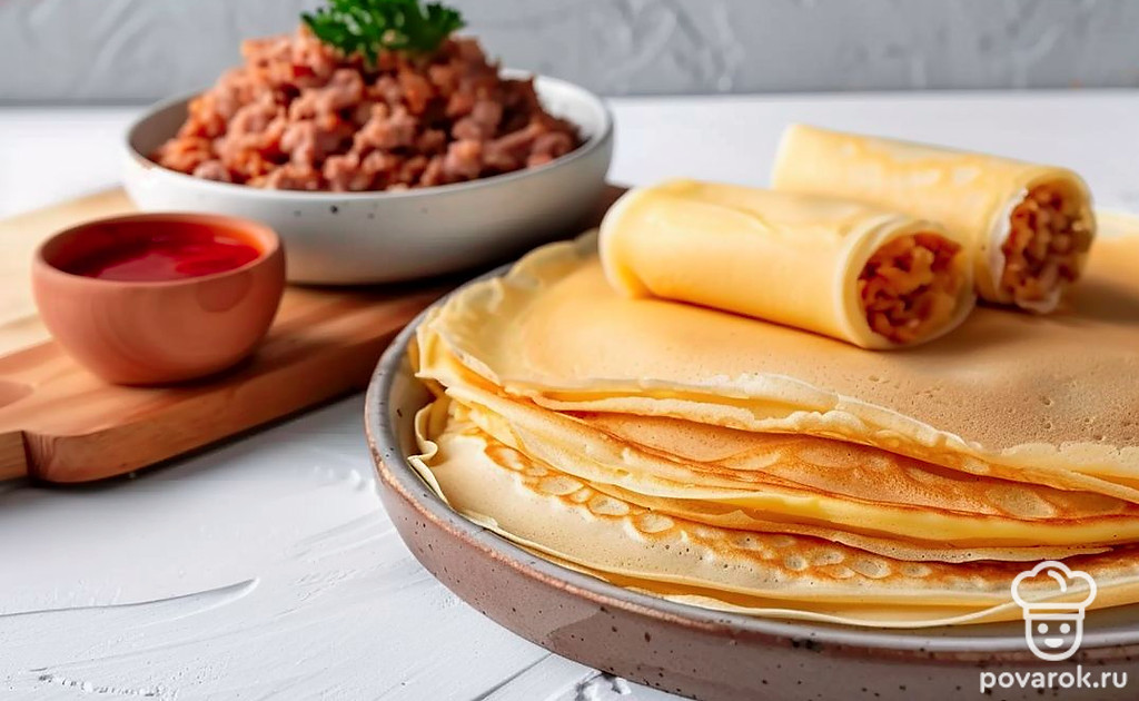 В зависимости от вида термической обработки молоко бывает пастеризованное, ультрапастеризованное, топленое, стерилизованное. Топленое молоко содержит витамины А, Е, группы В, Д, макро— и микроэлементы (калий, фосфор, кальций, магний, йод, молибден, селен и др.), ретинол, казеин, аминокислоты. Блинчики на таком молоке получаются особенно ароматными. Подавайте их со сладкими вареньями и джемами или нейтральными творогом и сметаной.