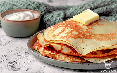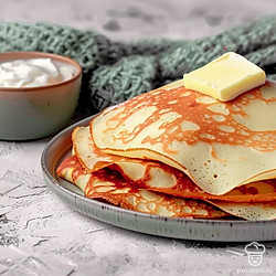 Блинчики — отличный вариант завтрака. Для этого рецепта мы использовали в тесте разрыхлитель, благодаря чему они получаются нежными. А при добавлении еще и начинки, блюдо насытит вас на весь день и зарядит энергией. Начинки можно придумать и сладкие, и соленые.