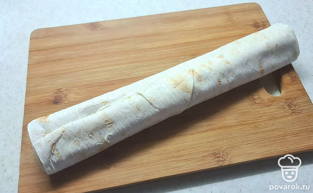 Разверните лаваш и намажьте на него получившуюся смесь.