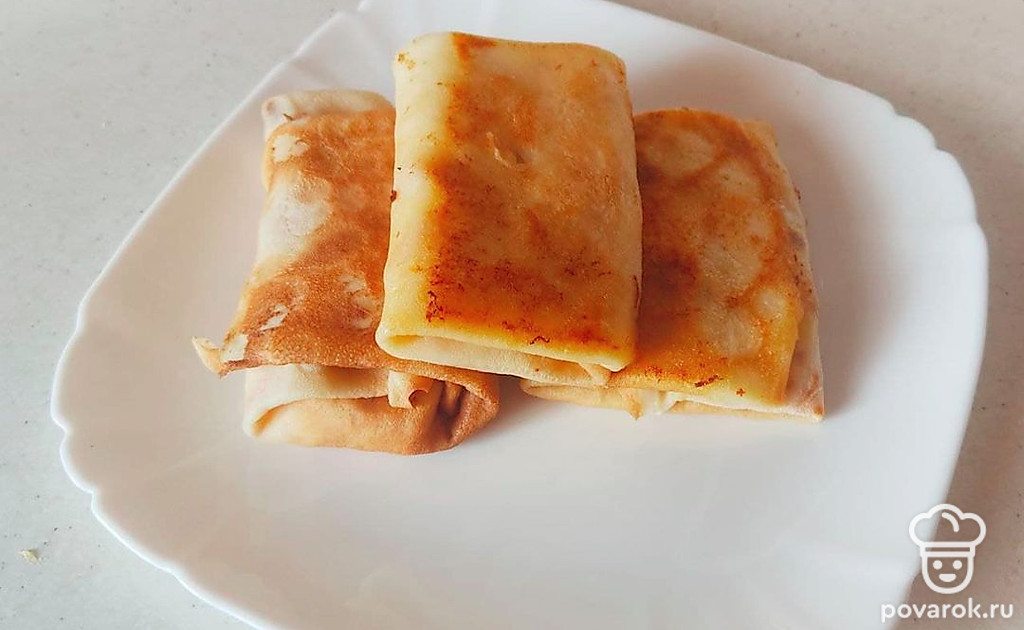 Вкусное, сытное и очень простое блюдо. Начинка блинчиков – классическое и беспроигрышное сочетание, простая и так любимая многими еда. Блюдо готовится на скорую руку. Такие блинчики – отличный вариант для быстрого перекуса, который также удобно взять куда-либо с собой. Блюдо подойдет и в качестве праздничной закуски, и выручит в качестве угощения нежданным гостям.