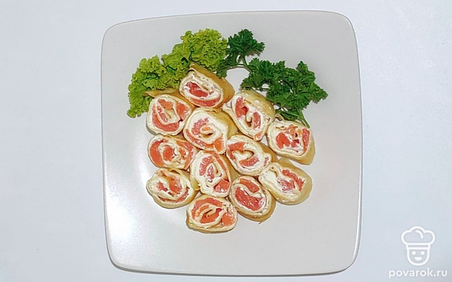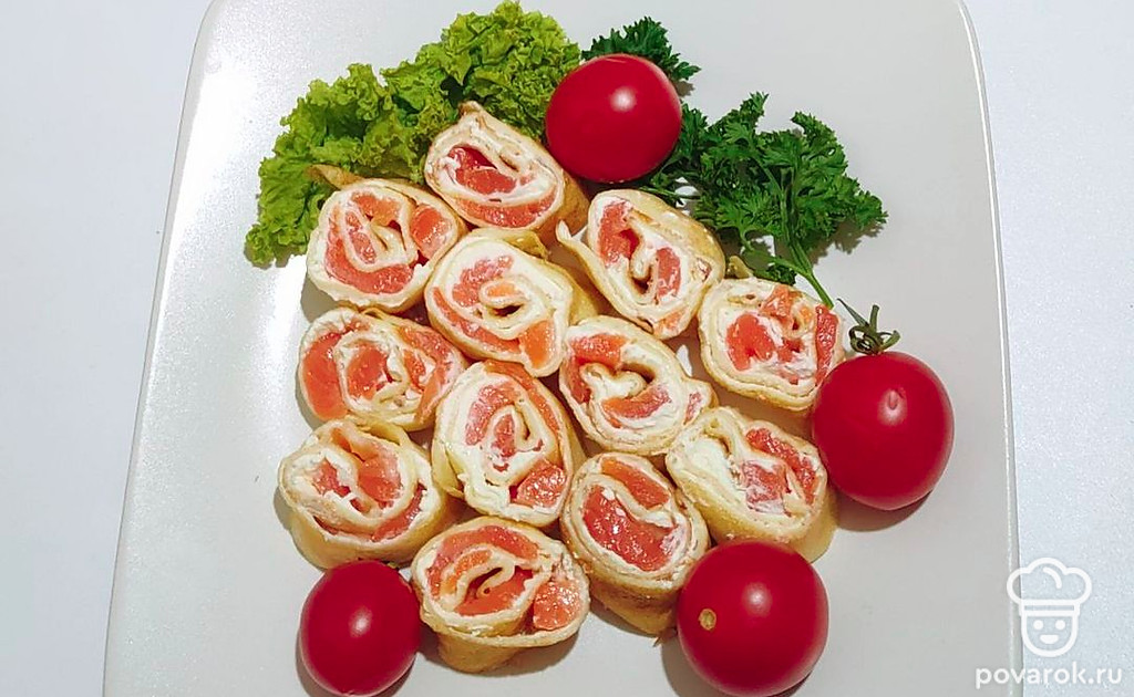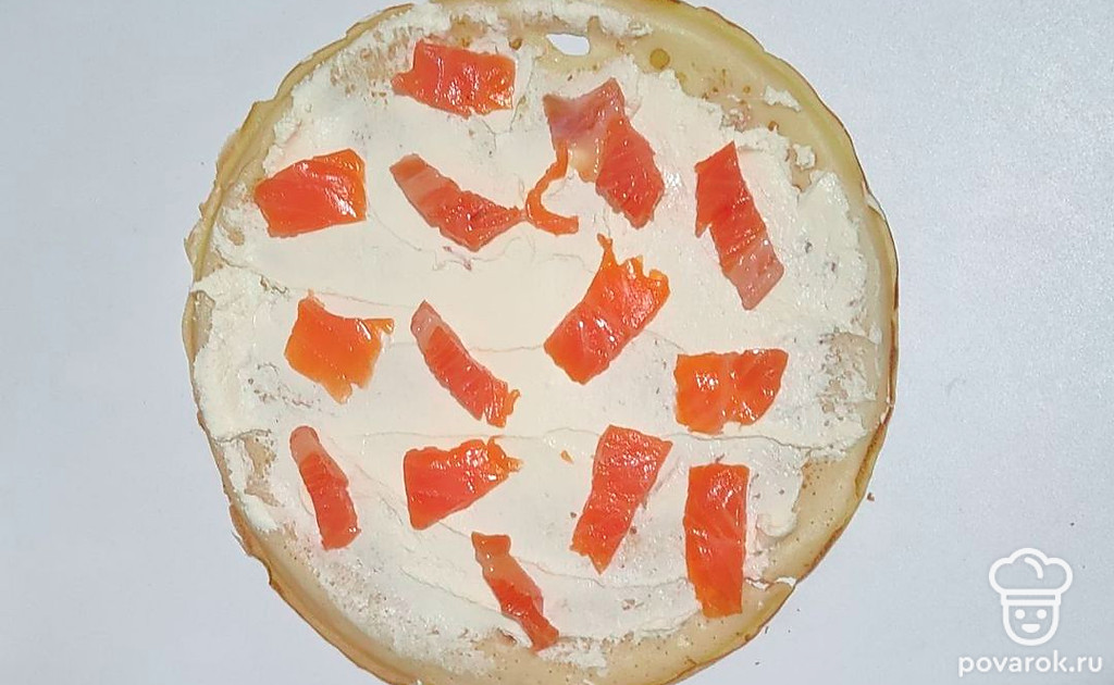 Блинчики с семгой, смазанные сливочным сыром - прекрасное дополнение для вашего застолья. Их можно подавать как главным блюдом, так и второстепенным. Блинчики получаются очень вкусными, сливочный сыр добавляет особую нотку нежности. Также невозможно промолчать о пользе начинки, ведь в семге содержится очень много витаминов и микроэлементов, полезных для сосудистой системы человека.