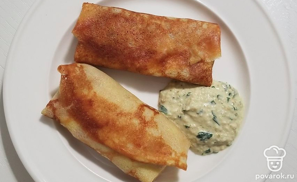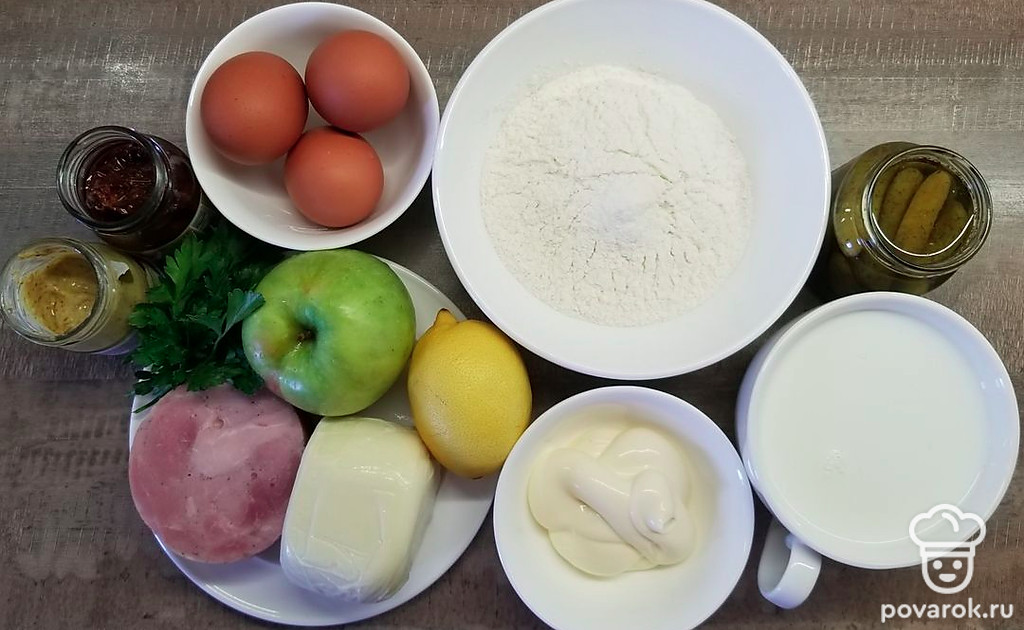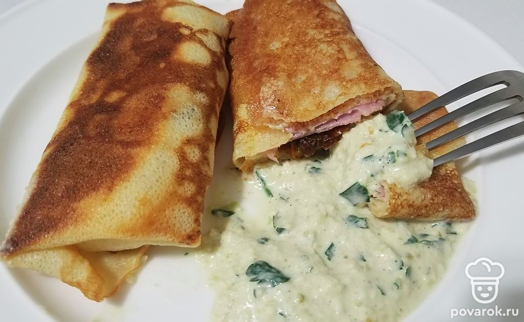 Блины — любимое и известное блюдо, вариантов приготовления которых великое множество. По-разному готовят тесто и не счесть вариантов начинок, сладких и соленых, простых и сложных. Рецепт приготовления блинов с ветчиной и сыром прост и незатейлив, это один из самых популярных рецептов. Но подав к таким блинам соус ремулад, вы будете поражены, насколько преображается это привычное блюдо. Соус ремулад пришел к нам из французской кухни, основа соуса — майонез, также обязательными ингредиентами являются маринованные корнишоны, горчица и зелень. Добавив в традиционную основу яблоко и чеснок, получим невероятно вкусный, освежающий и немного острый соус.