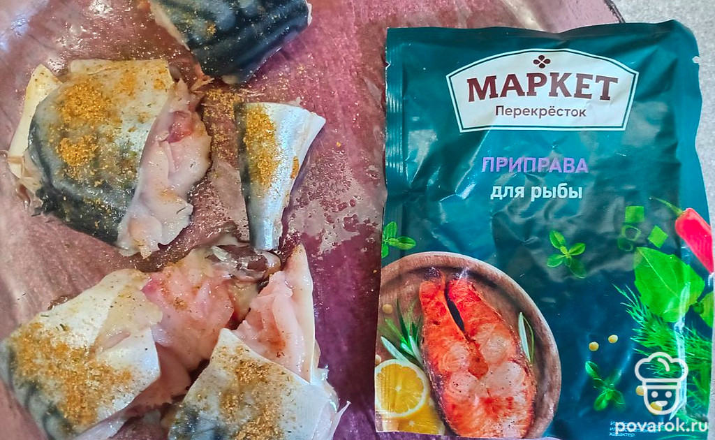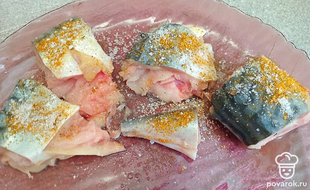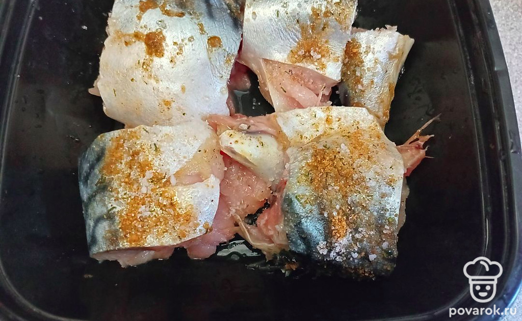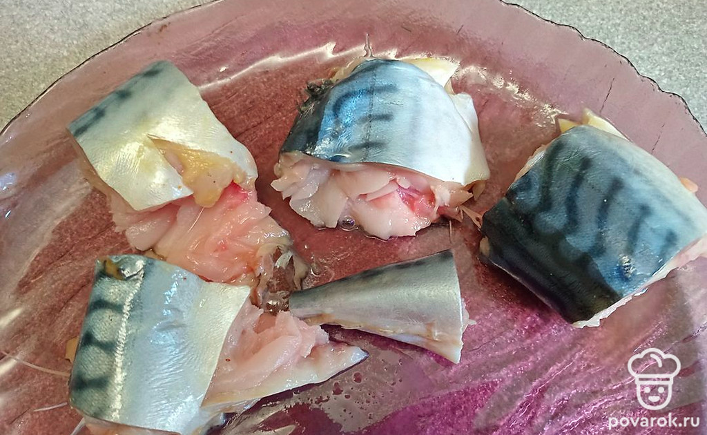 У скумбрии удалите внутренности. Нарежьте рыбу.