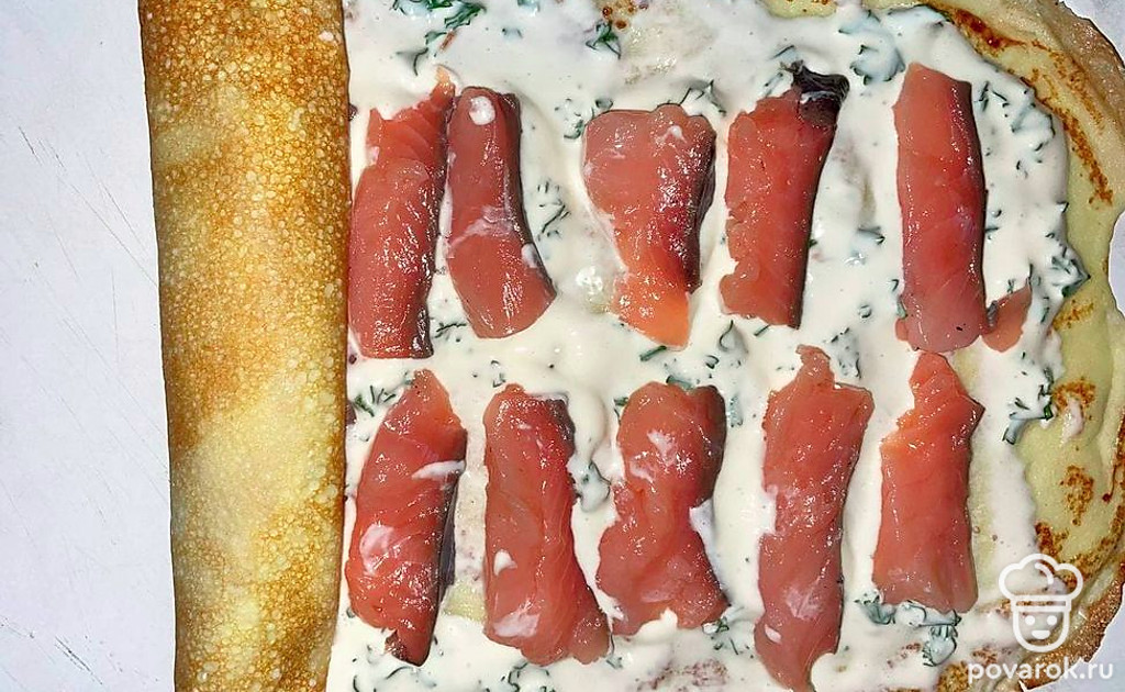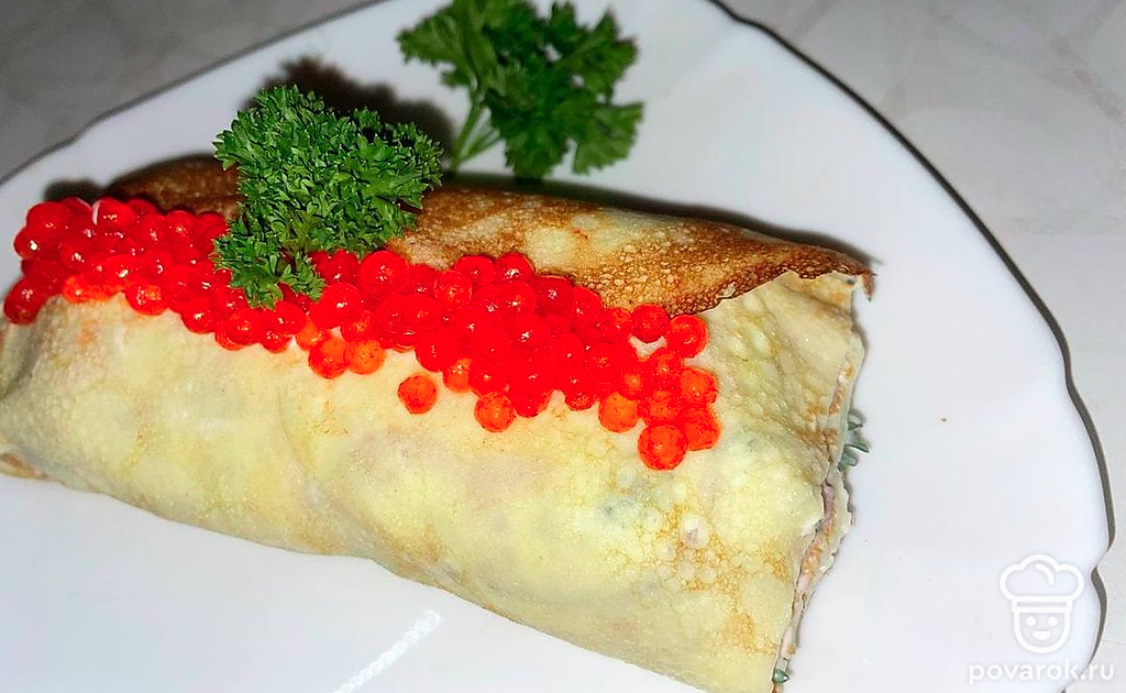 Блинный рулет с красной рыбой — это простая в приготовлении отличная закуска, хорошо дополняющая любой праздничный стол. Классические блины со вкусом соуса из сливочного сыра, сметаны и зелени, хорошо сочетаются со слабосоленой семгой и красной икрой, создавая незабываемый вкус.