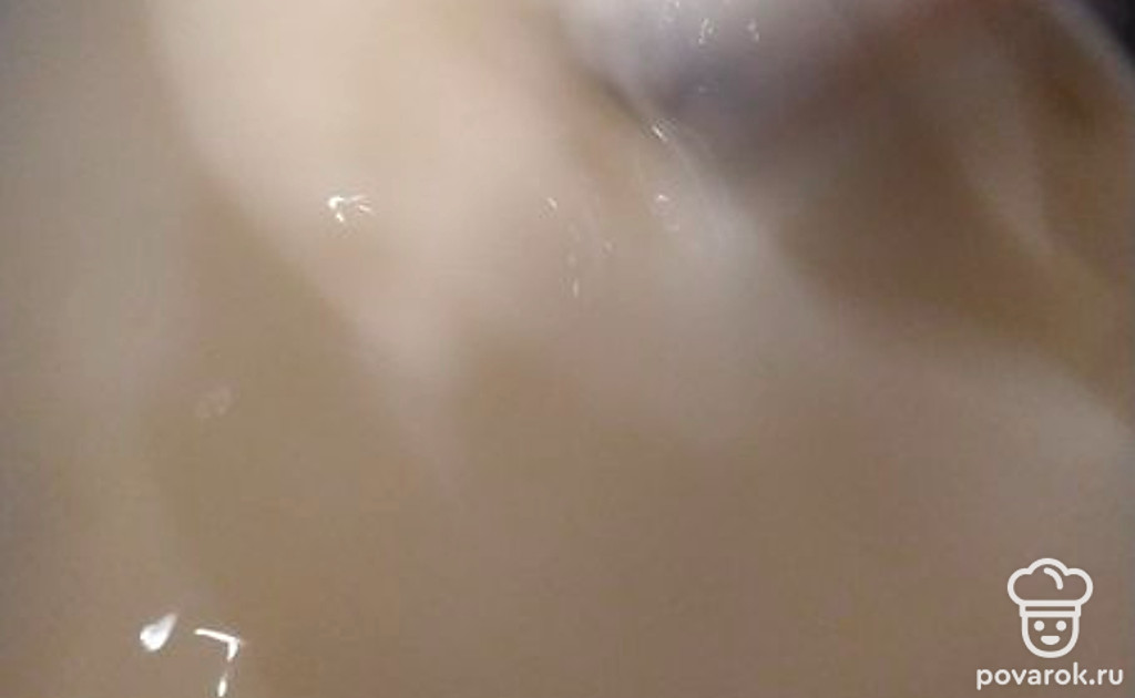Налейте молоко в миску, разбейте в него яйцо и добавьте соль по вкусу. Затем тихонечко всыпайте в смесь рисовую муку и одновременно перемешивайте вилкой. Тесто по консистенции должно быть похожим на жидкую сметану.