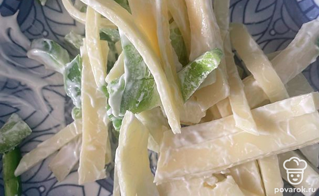 Смешайте в тарелке сыр, перец и майонез. Начинка готова.