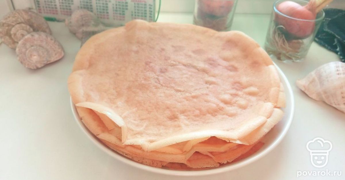 Тарелку с небольшой горкой ароматных блинов поставьте в центр стола.
