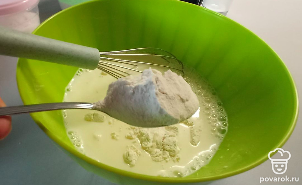 Добавьте 5 ложек муки и тщательно перемешайте.