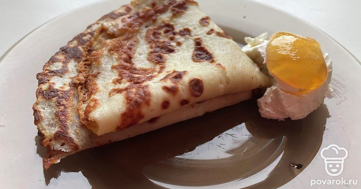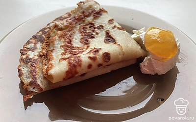 На хорошо разогретую сковороду, смазанную маслом, вылейте тесто и выпекайте по 2 минуты с каждой стороны.