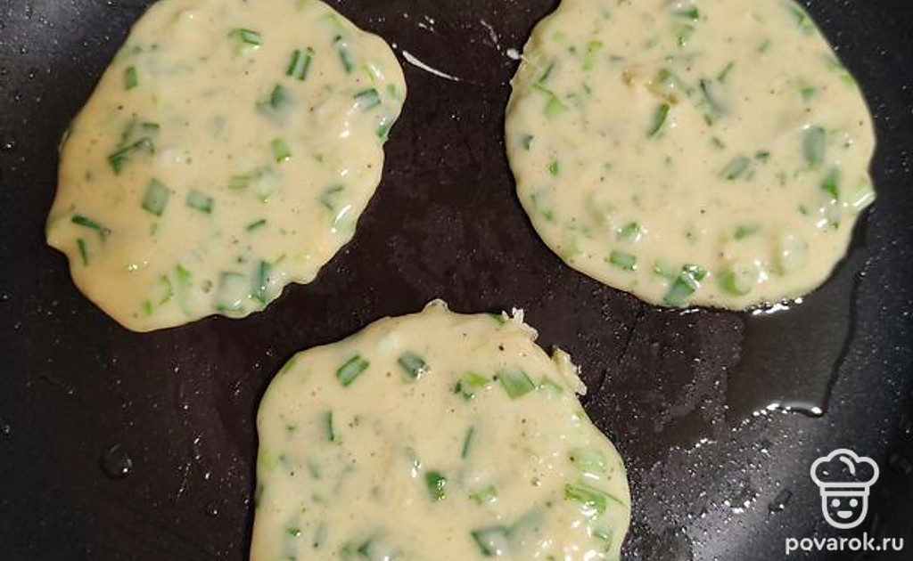 Вкусные блины с зеленым луком. Готовятся просто и быстро. Подавать обязательно со сметаной.