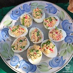 Я научилась фаршировать яйца любым составом. Это блюдо всегда выигрышно на праздничном столе, так как гостям интересно распробовать неожиданную начинку.