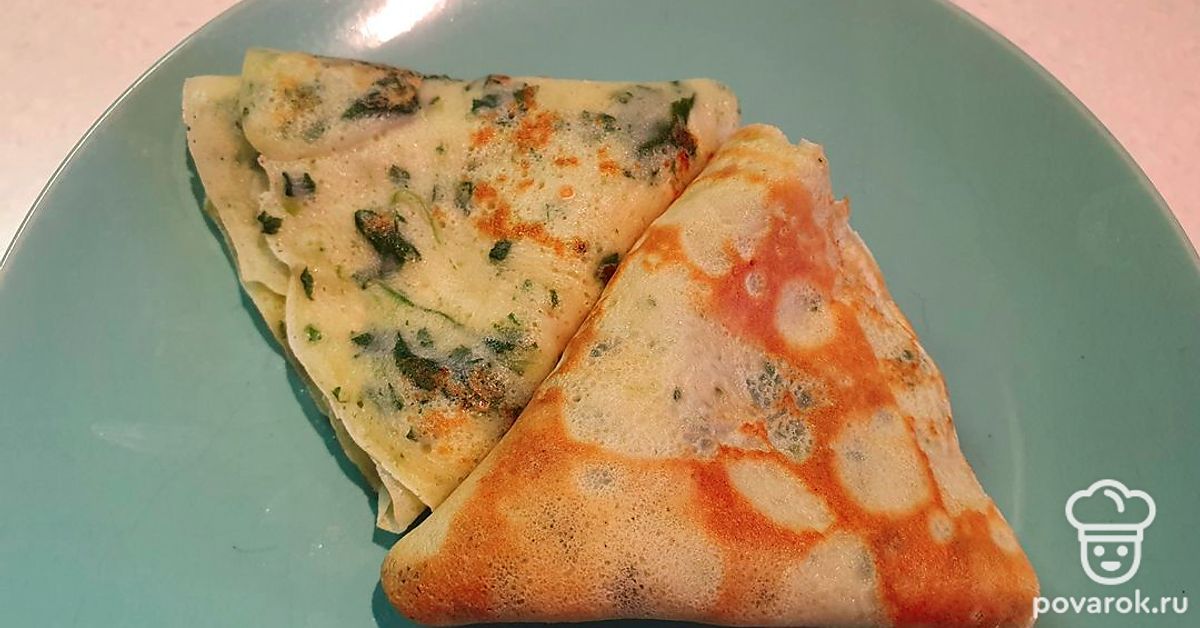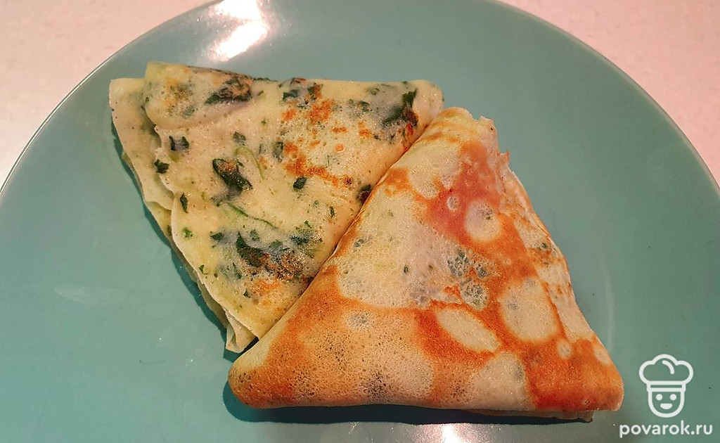 Этот рецепт блинов из всего разнообразия отличается высоким содержанием витаминов, так как содержит в себе шпинат.