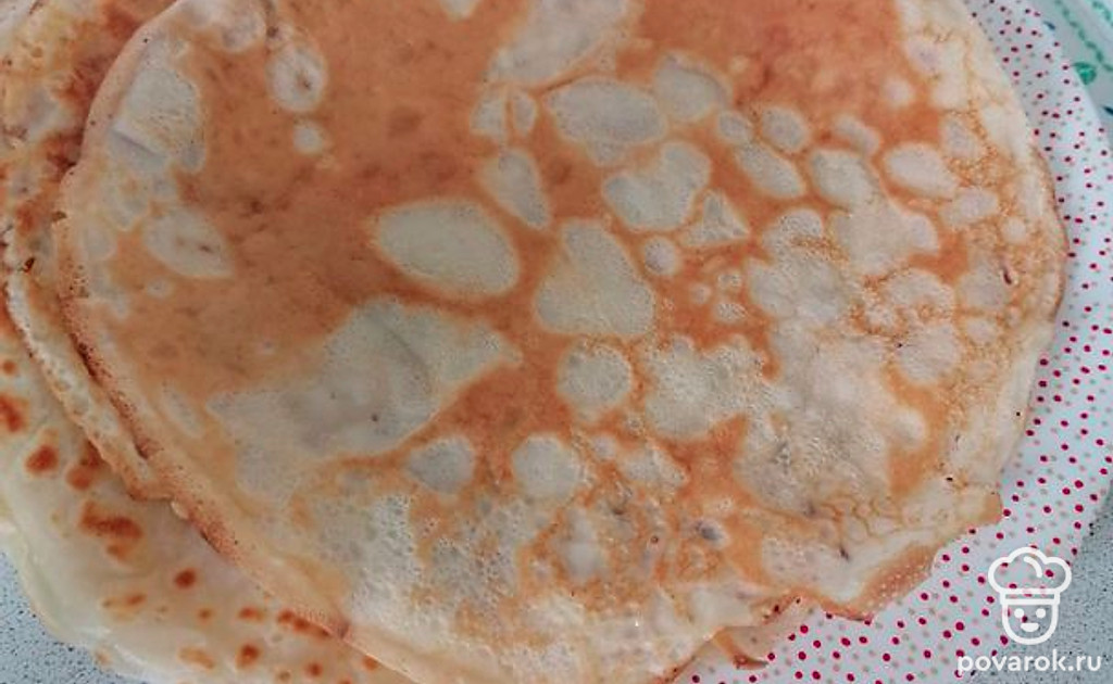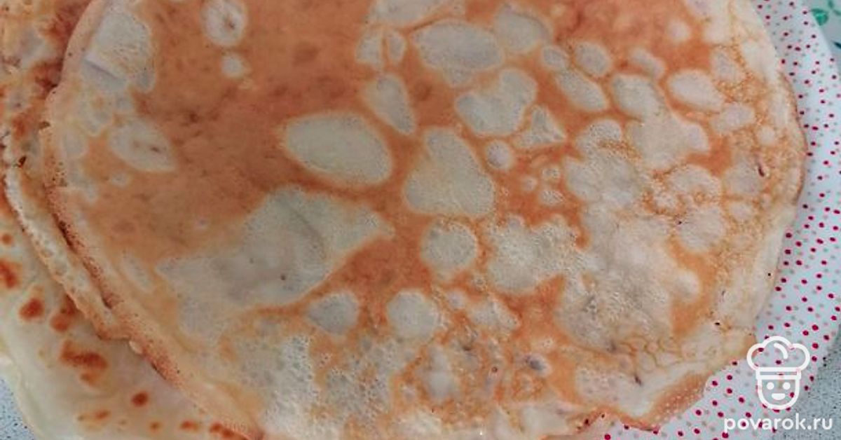 Вылить половником тесто на сковороду тонким слоем и пропечь с двух сторон.