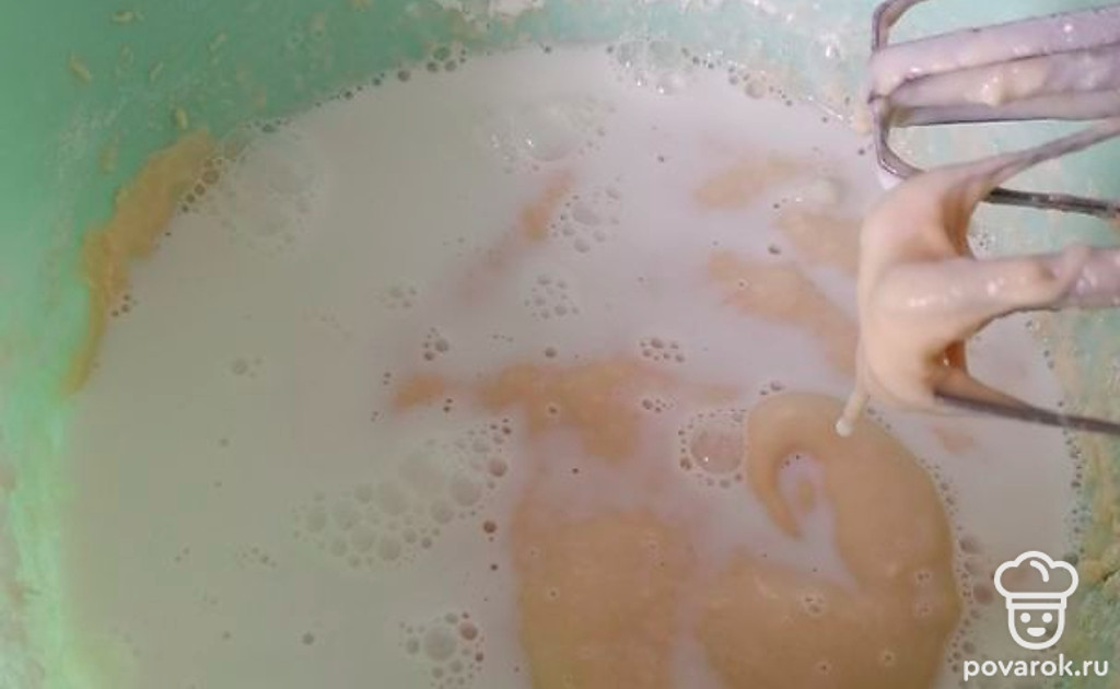 Вылить в тесто оставшиеся полстакана молока и перемешать.