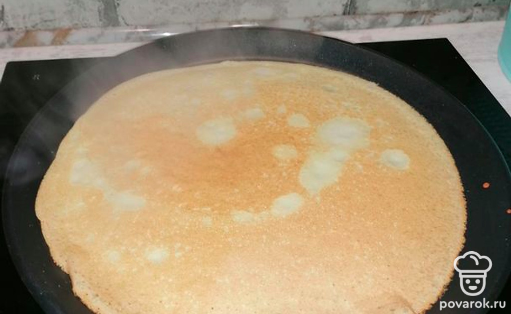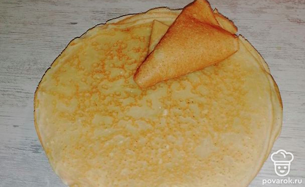 Подавать со сметаной, сгущёнкой и т. д. Остывшие блинчики можно завернуть с любой начинкой.