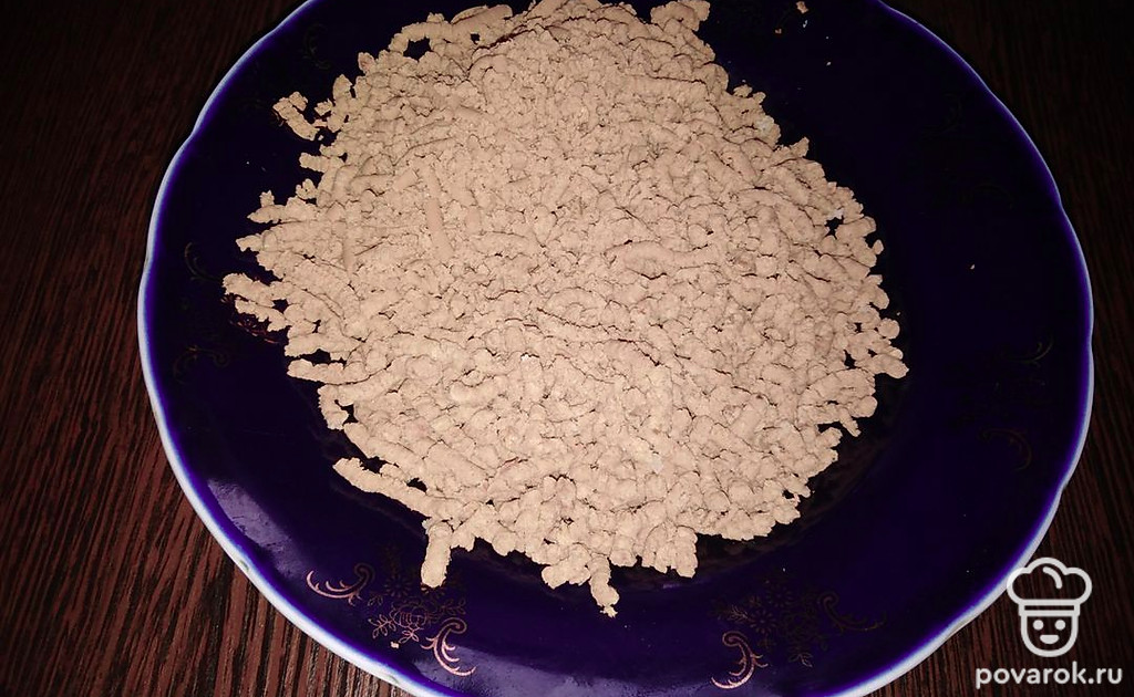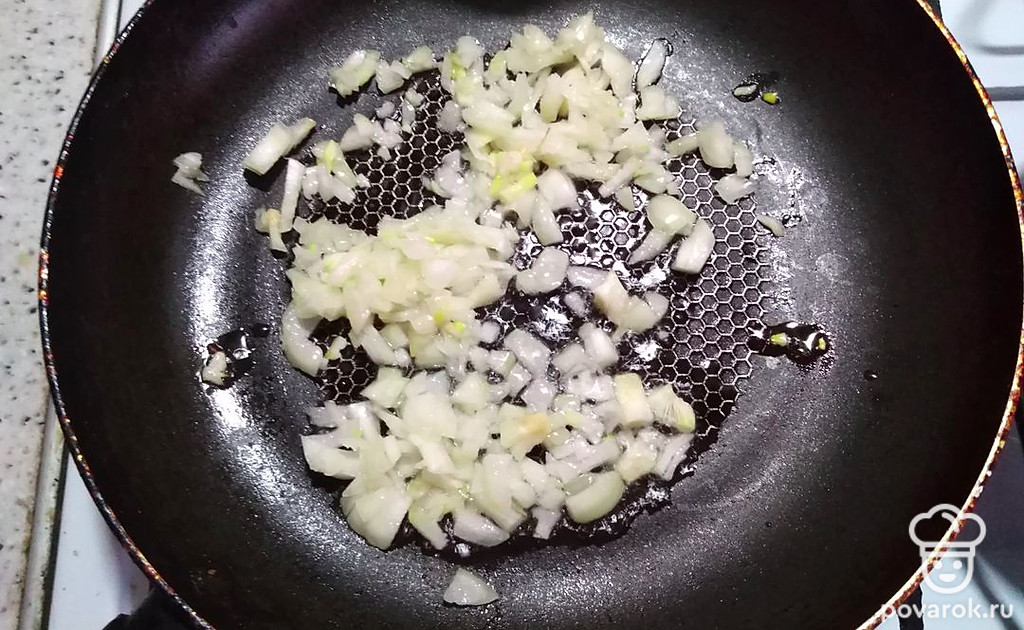 Обжарить на масле, добавить в мясо. Если будет суховато, влить бульон.