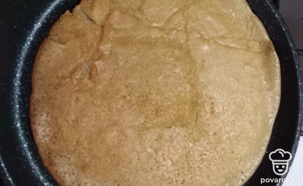 Смешать воду, муку, соль и гашёную соду. Тесто должно быть очень жидким. У меня получилось 13 блинчиков из этого количества продуктов. Положить на готовые блинчики фарш и завернуть.