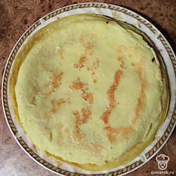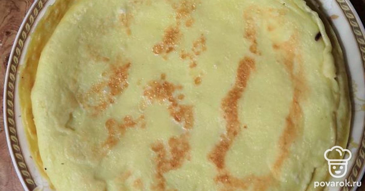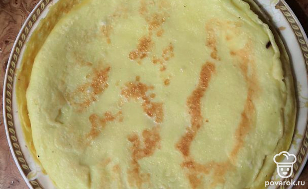 Добавьте 1 стакан молока, 2 яйца и взбейте венчиком до однородной массы, которая должна получиться как жидкая сметана. В случае необходимости добавьте муки.
