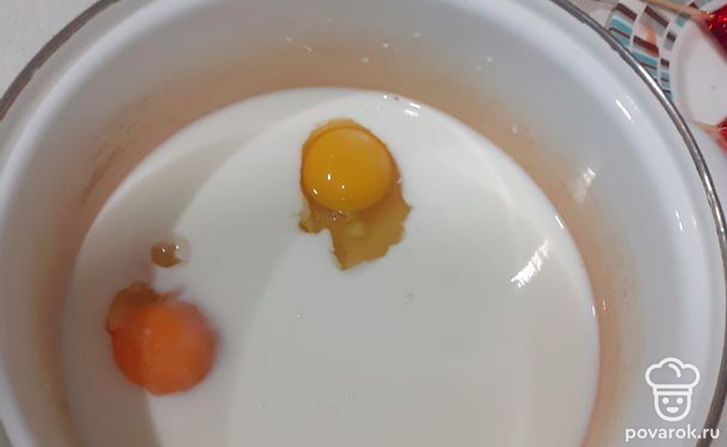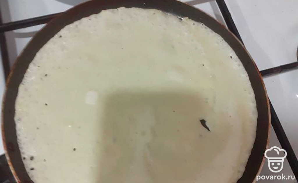 Затем паловником наливаем наше жидкое тесто. Через пару минут переворачиваем.