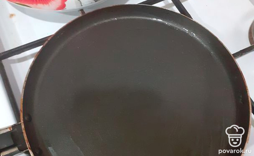 Ставим сковородку на огонь, смазываем подсолнечном маслом.