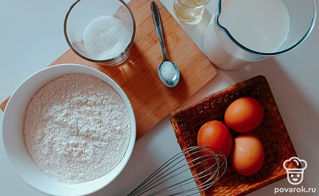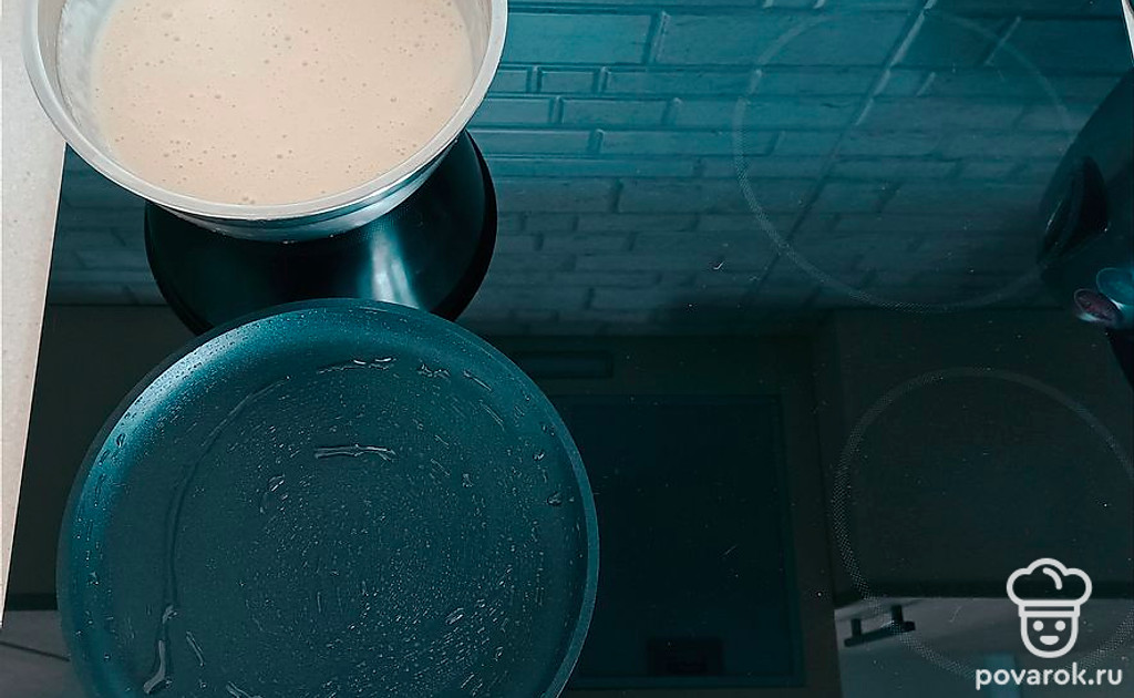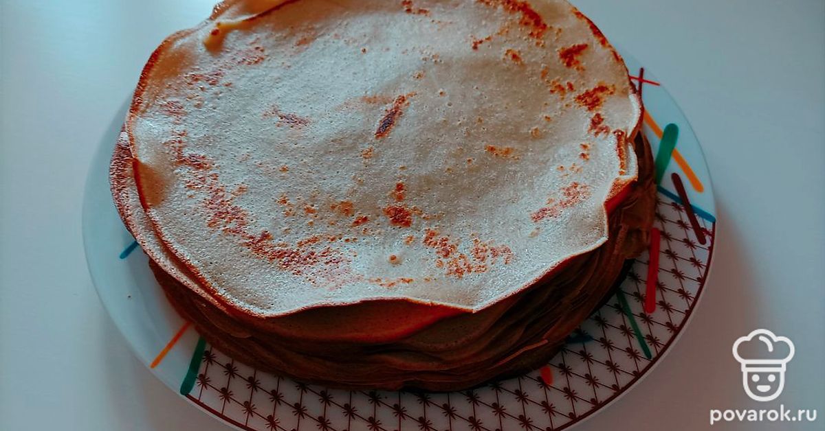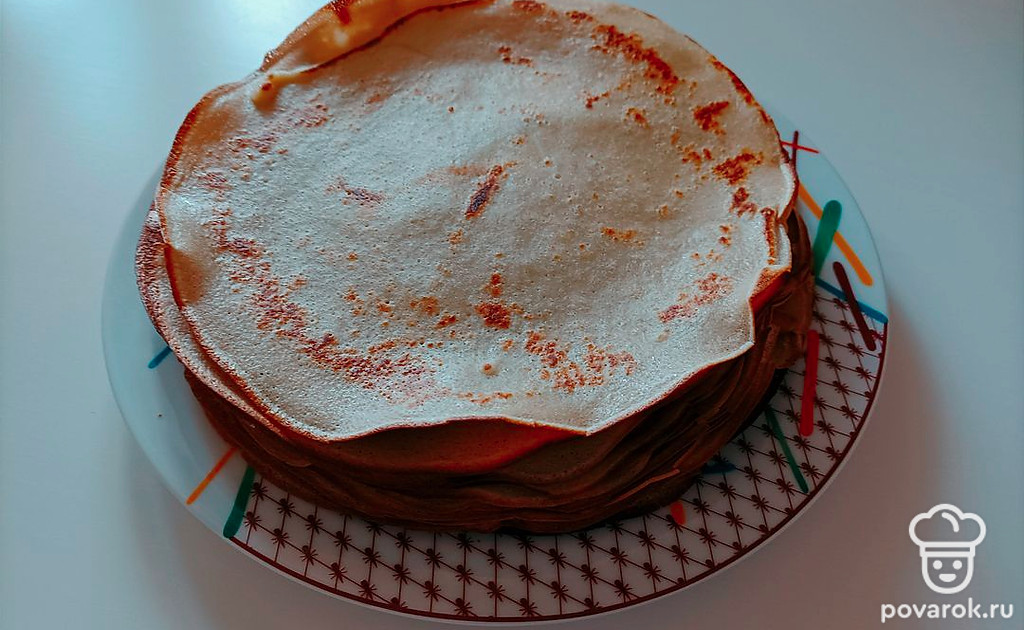 Хорошо разогреваем сковородку. Жарим с двух сторон до золотистой корочки. Для того, чтобы понять, что пора переворачивать, необходимо посмотреть на край блина (по периметру блин должен начать темнеть). Для того чтобы блинчики получились тонкими, необходимо выбрать специальную сковороду без бортиков, а также после того, как вылете на сковороду тесто и его равномерно распределите, остатки слейте обратно в миску.