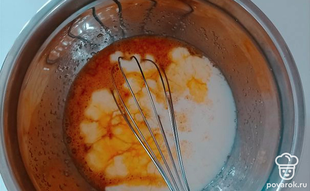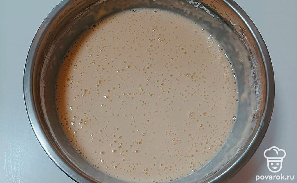 Взбиваем до состояния жидкой сметаны. Главное, чтобы не было комочков, масса была однородной.