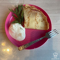 Я подаю со сметаной и зеленью, можно с ветчиной и сыром, или с вареньем и сгущенкой. Приятного аппетита!