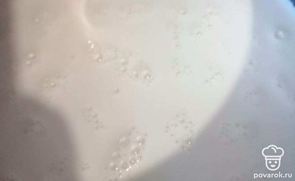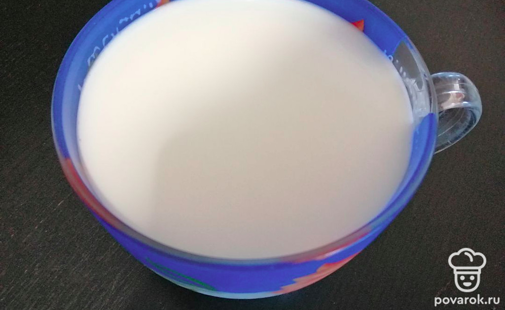 Молоко налить в кастрюлю и подогреть примерно до 40 градусов.