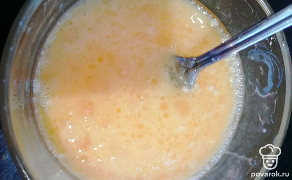 В отдельной чашке смешать яйца, сахар и подсолнечное масло.