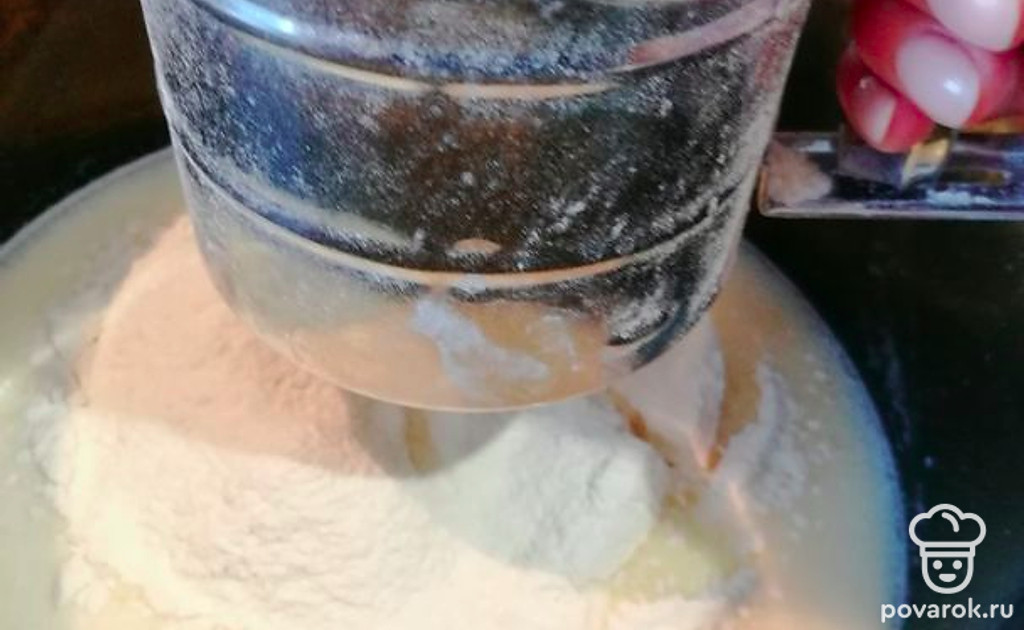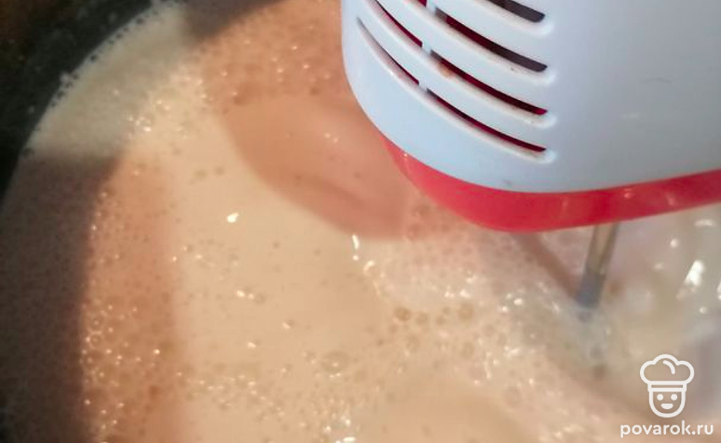 Добавить оставшееся молоко с содой и перемешать миксером.