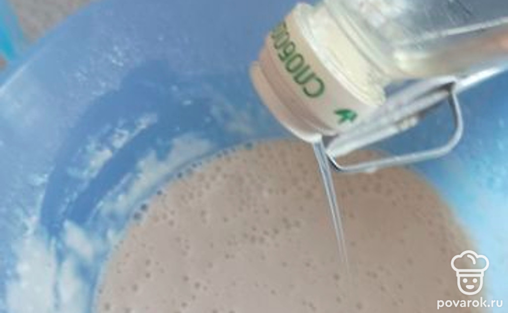 В тесто вливаем немного подсолнечного масла и перемешиваем.