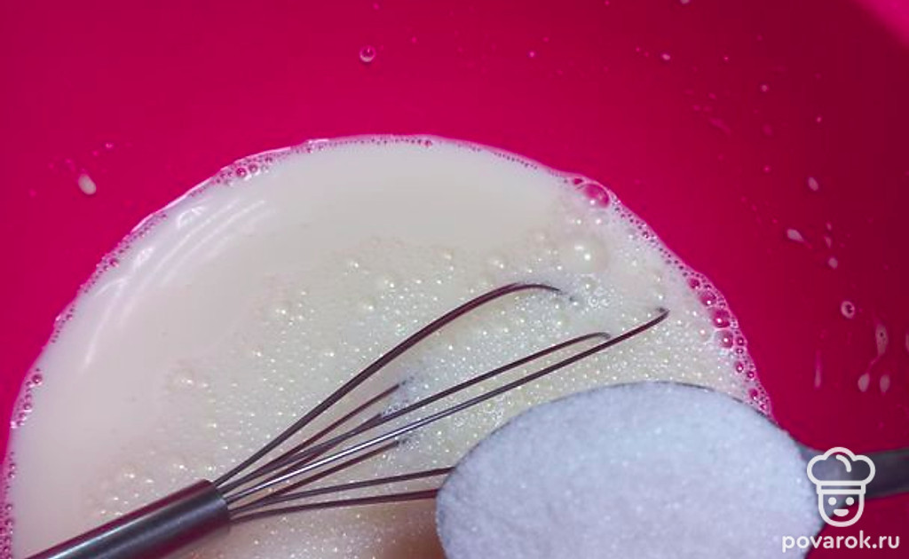 Добавить одну чайную ложку соли и три столовых ложки сахара и все перемешать.